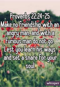 Lest thou learn his ways, and get a snare to thy soul. –Proverbs 22:24-25